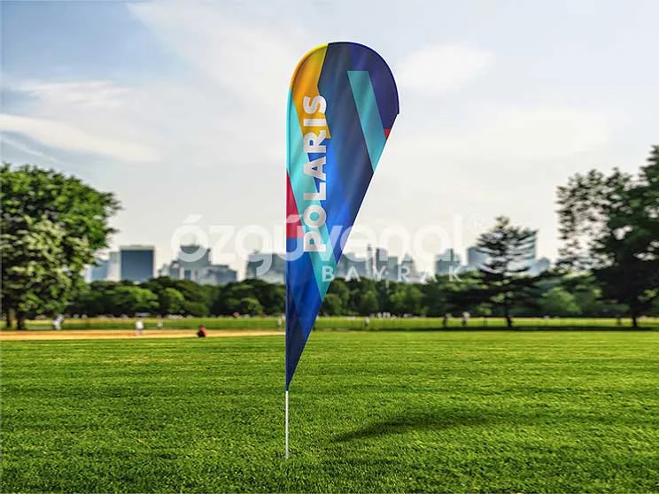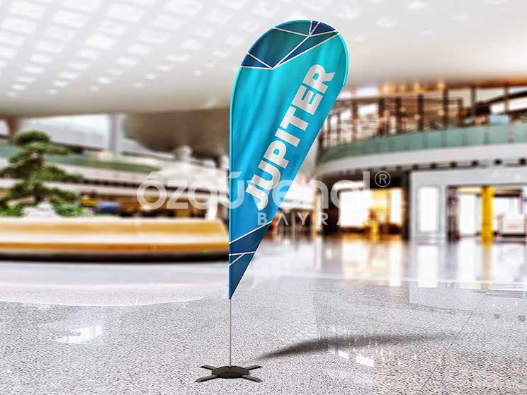 Yıpranmayan, solmayan, müşterice her iki tarafı da kolaylıkla okunabilen damla bayraklar işyerlerinizin tabelası kadar değerli tanıtım mekanizmalarıdır. Markanızın, sloganınızın ve müşteriye hitabınızın tek bir zeminde birleşip daha güçlü hale gelmesini sağlayan, gösterişli bayraklardan olan damla bayraklar kolay monte edilebilmesi sayesinde çok rahat kullanılabilmektedir.