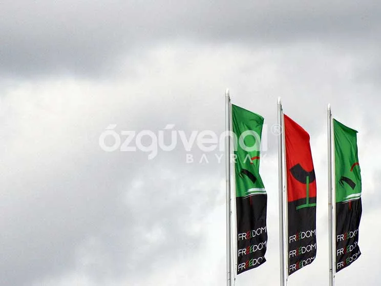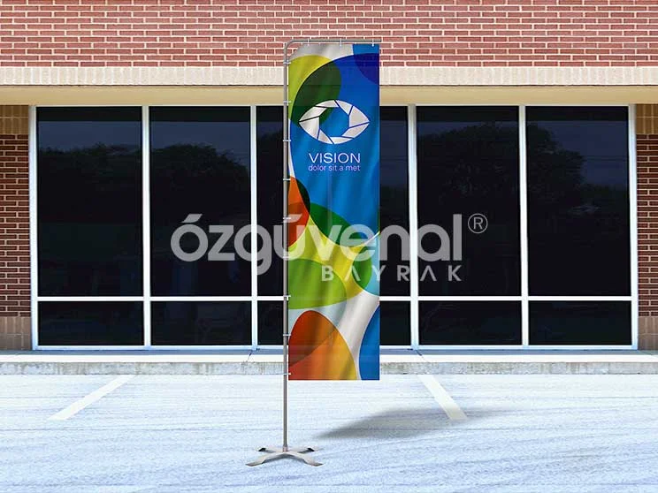 Açık alan yerleştirmeleri için ideal olan dikey bayrak modelleri firmamız tarafından yüksek kalitede üretilmekte ve teslim edilmektedir. Her iki tarafı da okunabilir şekilde tasarlanan ve imal edilen dikey bayraklar işyerlerinizi önündeki en önemli reklam araçlarınızdan biridir. Parlak kumaşlar kullanılarak üretildiği için görünümü de göze hitap eder ve dikkat çeker.