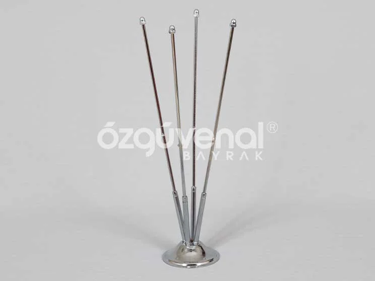Paslanmayan krom metalinden imal edilen masa bayrak direği, polyester veya saten kumaştan yapılan bayrağın kendisinin asılı durduğu şık direktir. Bulunulan masayı renklendiren masa bayrağı tekli, ikili, üçlü veya dörtlü şekilde yerleştirilebilmektedir.