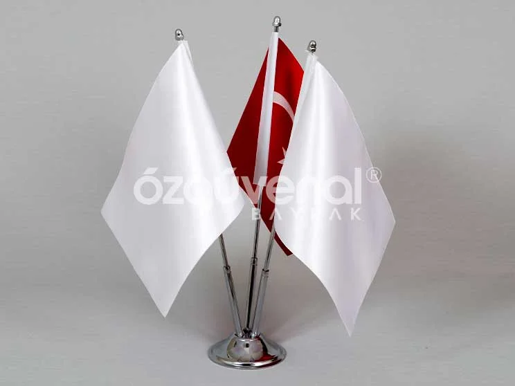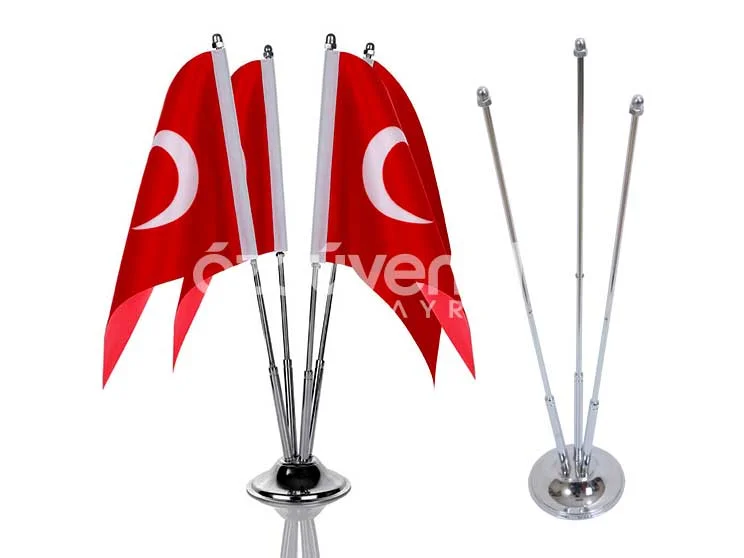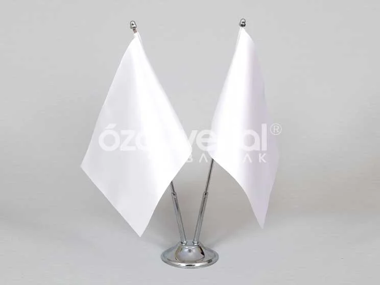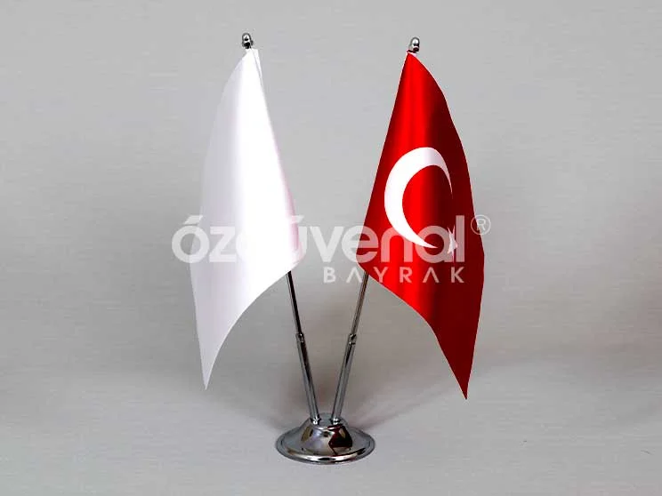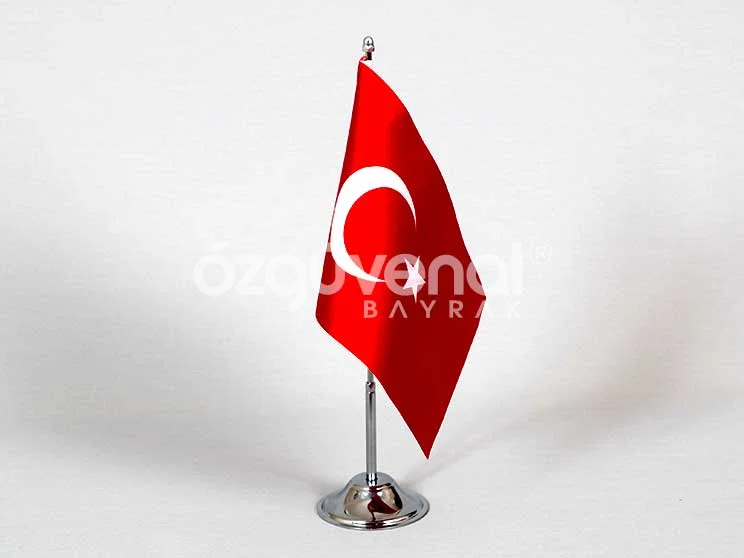 Yüksek kalitede çeşitli modellerde üretilen masa bayrakları, krom direklerde oldukça gösterişli durmaktadır. Zamanla paslanmaması adına özel olarak üretilen masa bayrak direkleri, ilk günkü kalitesini ve görüntüsünü korumaktadır. Firmamız hem krom bayrak direği hem de masa bayrağı üretimini gerçekleştirmektedir. Arzu ettiğiniz tüm modellerde üretim yapılabilmektedir.
