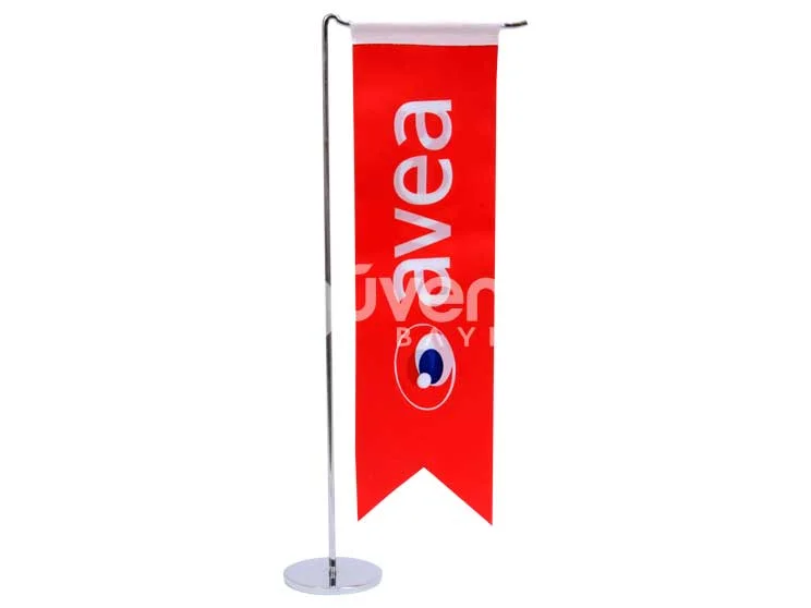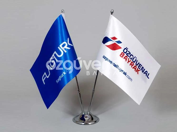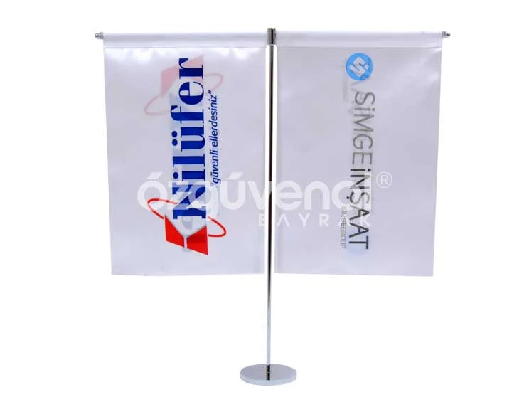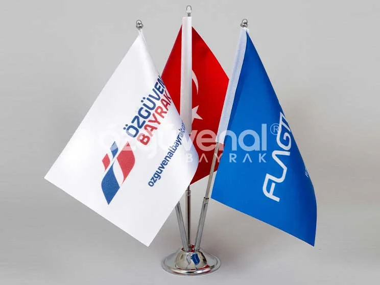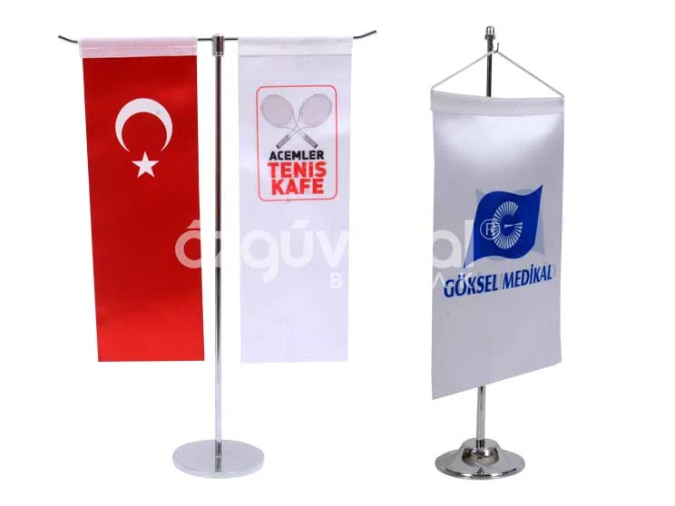 Ofislerin ve makam odalarının büyüklüğüne göre yerleştirilen, vazgeçilmez mobilyalar niteliğindeki masaların üzerindeki kalem, sumen, ajanda ve takvim gibi masaüstü eşyaların yanında dikey olarak direk üzerinde duran masa bayrağı baskı çeşitleri, müşterilerin isteğine göre farklılık arz etmektedir.