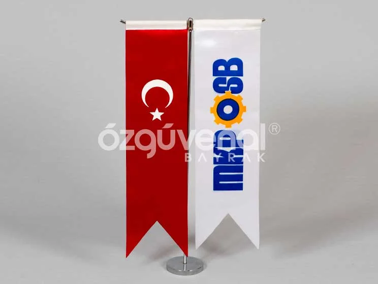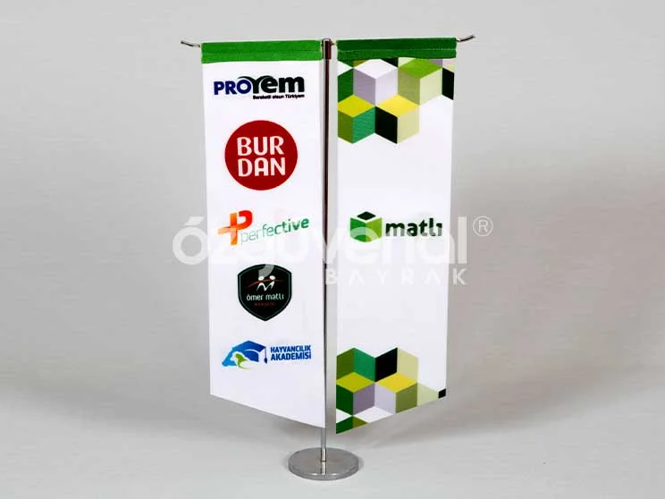 Bakanlıkların, genel müdürlüklerin, holdinglerin, şirketlerin, vakıfların, derneklerin, sivil toplum örgütlerinin, meslek örgütlerinin, esnaf odalarının, birliklerin ve diğer tüm kuruluşların logoları, masa bayraklarına kalite standartlarına göre baskı olarak işlenir.