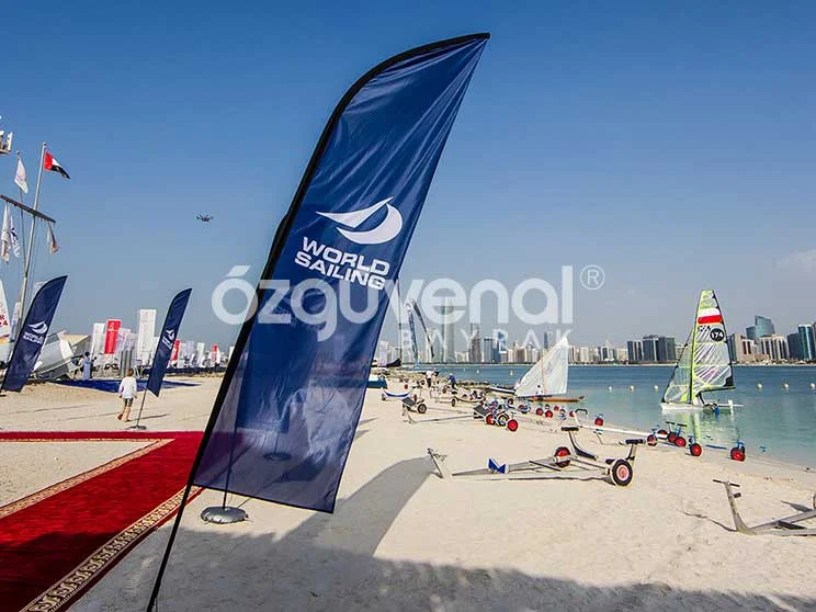 Temizliği de bakımı da kolay olan yelken bayrakların dijital baskı yöntemiyle üretilmiş olması solmasını ve yıpranmasını engellemektedir.
